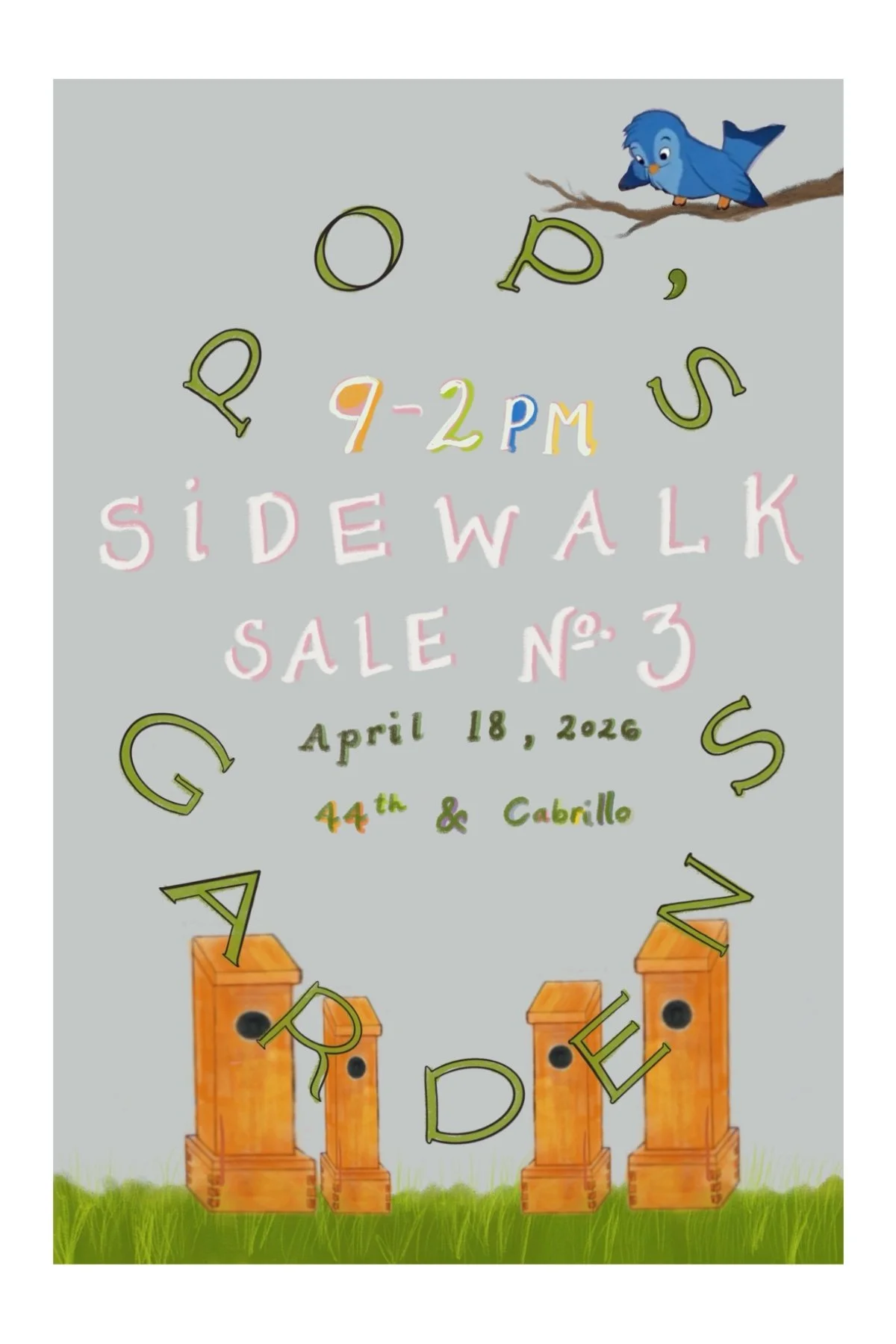 Hi. My Gardening company Pop’s Gardens is having its latest promotional sales event on this Saturday, April 18th at 9am. Please come if you are willing and able to be at a positive experience in San Francisco, California on that date and time. Thank you.